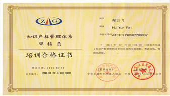 2015年2015年公司代理人獲得知識產權管理體系兼職審核員資格。