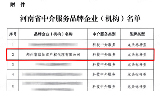 2023年6月鄭州睿信被評為河南省中介服務品牌龍頭標桿型企業,名列省百家品牌企業(機構)第2名。